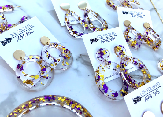 LSU Purple and Gold Clear Resin Jewelry