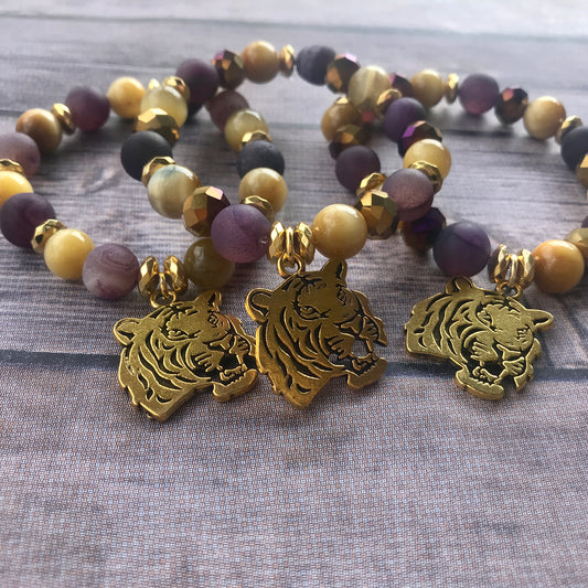 Tiger or Fleur de Lis Pendant Bead Hoop